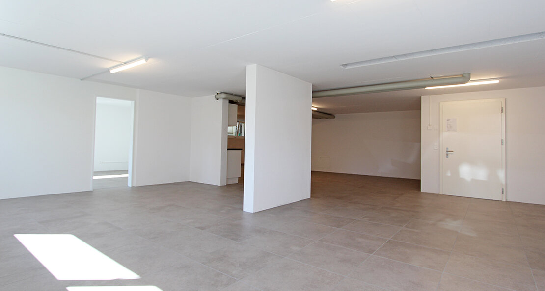 Die Gewerberäumlichkeiten befinden sich im Soussolgeschoss eines im Jahr 2016 erbauten Wohn- und Ärztehauses. Fünf Fenster auf der Süd-/Westseite sorgen ganztägig für ausreichend Tageslicht.