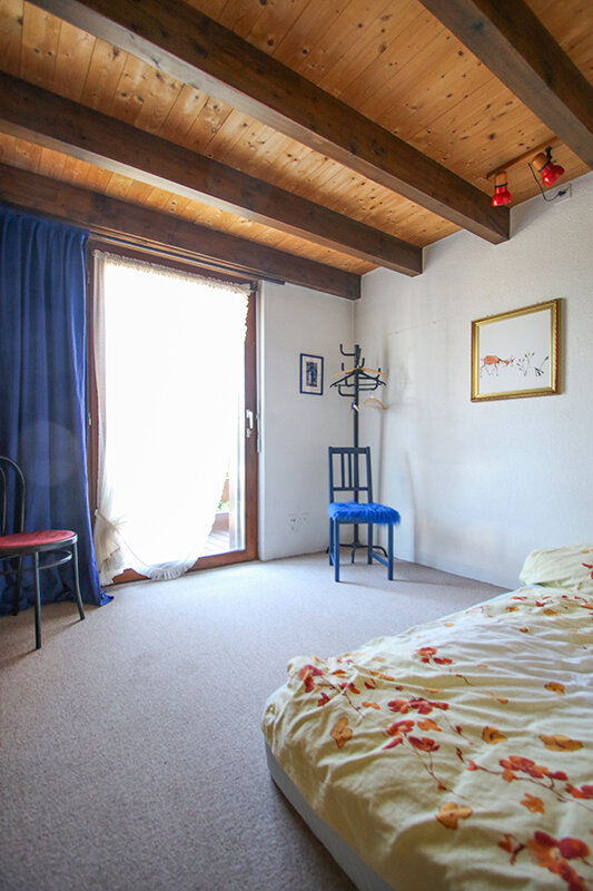 Nahe am Dorfzentrum mit Einkaufsläden und Bahnhof (BLS-Bahnlinie mit direkten Verbindungen nach Thun oder Bern (10 bzw. 30 min)