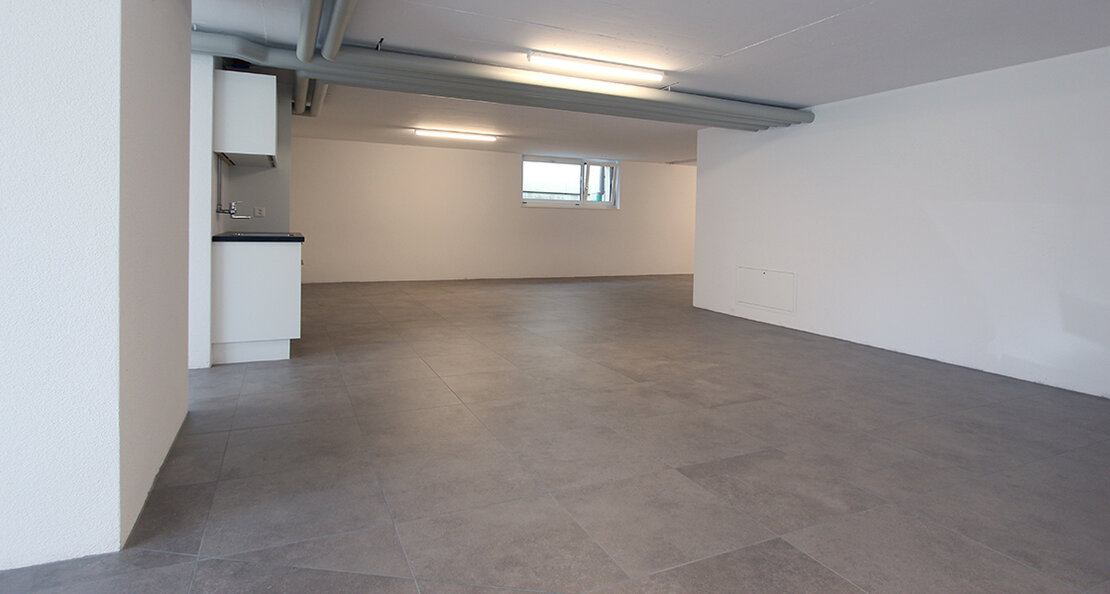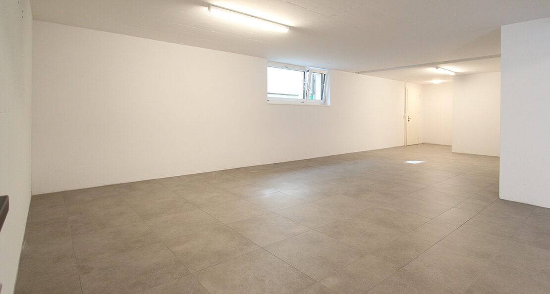 Die Gewerberäumlichkeiten befinden sich im Soussolgeschoss eines im Jahr 2016 erbauten Wohn- und Ärztehauses. Fünf Fenster auf der Süd-/Westseite sorgen ganztägig für ausreichend Tageslicht.